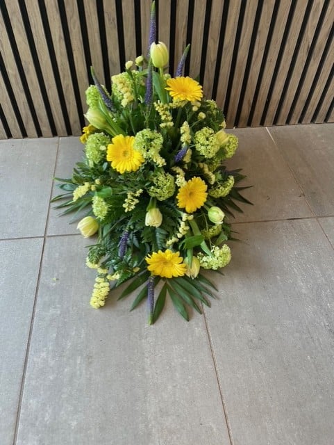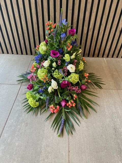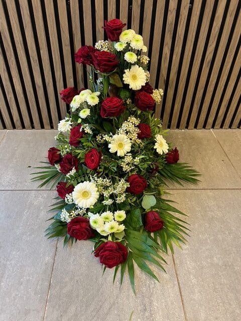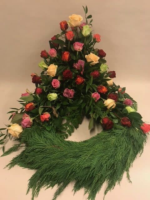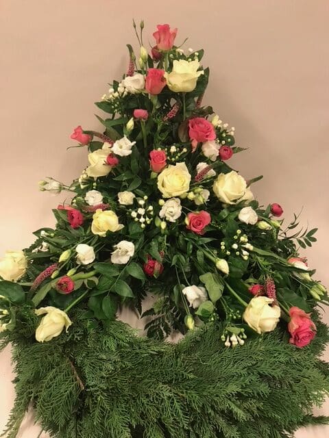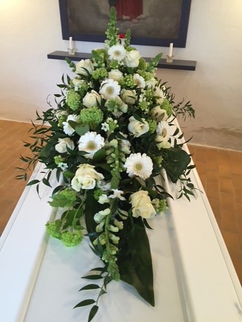 Uanset om du søger et traditionelt udtryk med kistepynt og kranse eller ønsker en mere personlig hyldest gennem bårebuketter og båredekorationer, har vi de rette løsninger. Vores sortiment afspejler både klassiske traditioner og moderne tendenser, alt sammen designet til at skabe en værdig og mindeværdig sidste hyldest.